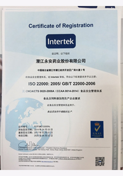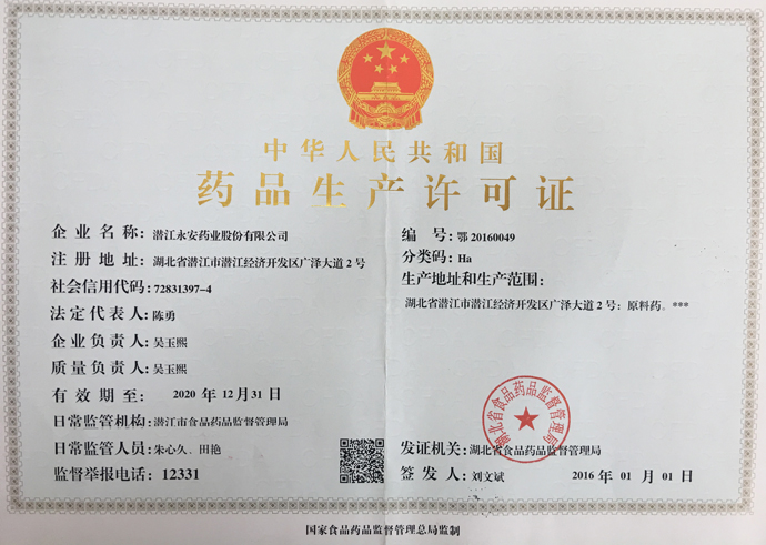 潛江永安藥業(yè)股份有限公司成立于2001年,坐落于江漢平原腹地潛江市國家高新技術產業(yè)開發(fā)區(qū),占地500余畝,注冊資金貳億玖仟肆佰陸拾捌萬貳仟伍佰元整,是一家擁有自主知識產權的國家高新技術企業(yè)。公司股票于2010年3 月5日在深圳證券交易所掛牌上市(股票代碼為002365)。公司具有雄厚的技術開發(fā)能力,是湖北省創(chuàng)新型企業(yè)和湖北省知識產權建設示范企業(yè)。公司研發(fā)平臺分別被認定為省級企業(yè)技術中心和湖北省功能性食品添加劑工程技術研究中心。 經(jīng)過多年的發(fā)展,公司形成了以食品及藥品添加劑牛磺